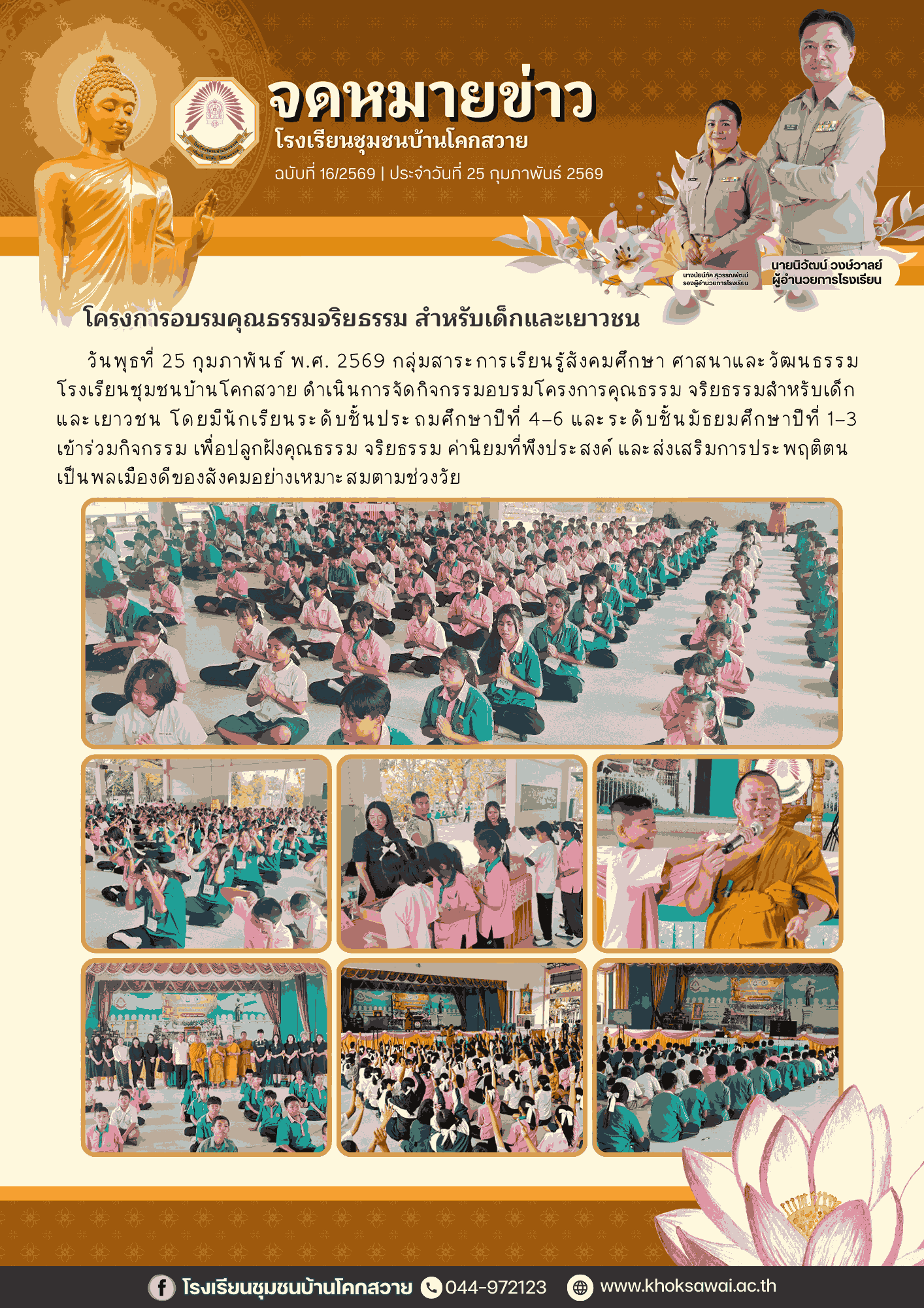 วารสารประชาสัมพันธ์ฉบับที่ 16/2569 - โครงการอบรมคุณธรรม จริยธรรม